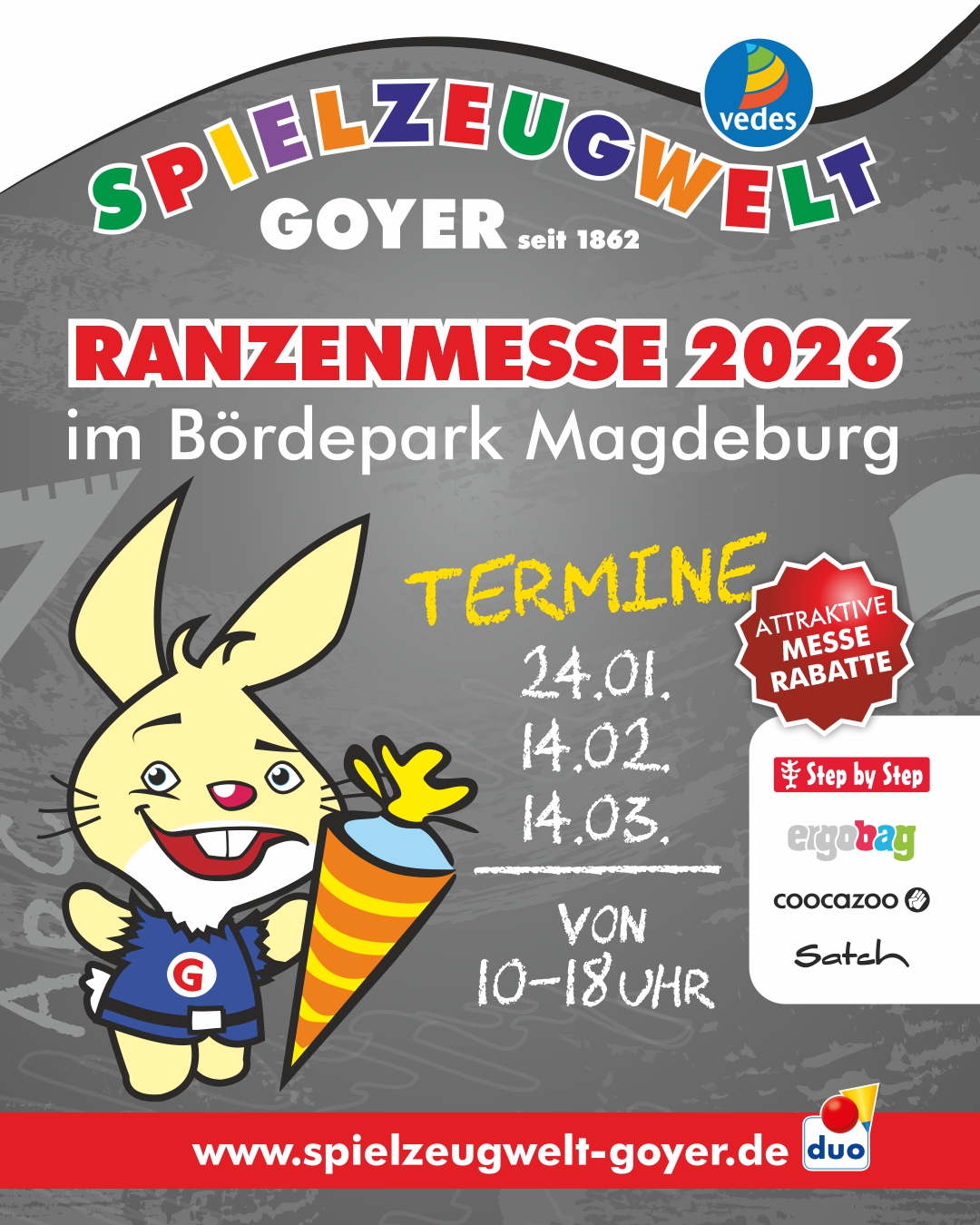 In der Spielzeugwelt Goyer im Bördepark dreht sich alles um den perfekten Schulranzen!Bei der Ranzenmesse 2026 können sich Eltern und Kinder auf eine große Auswahl, kompetente […] |